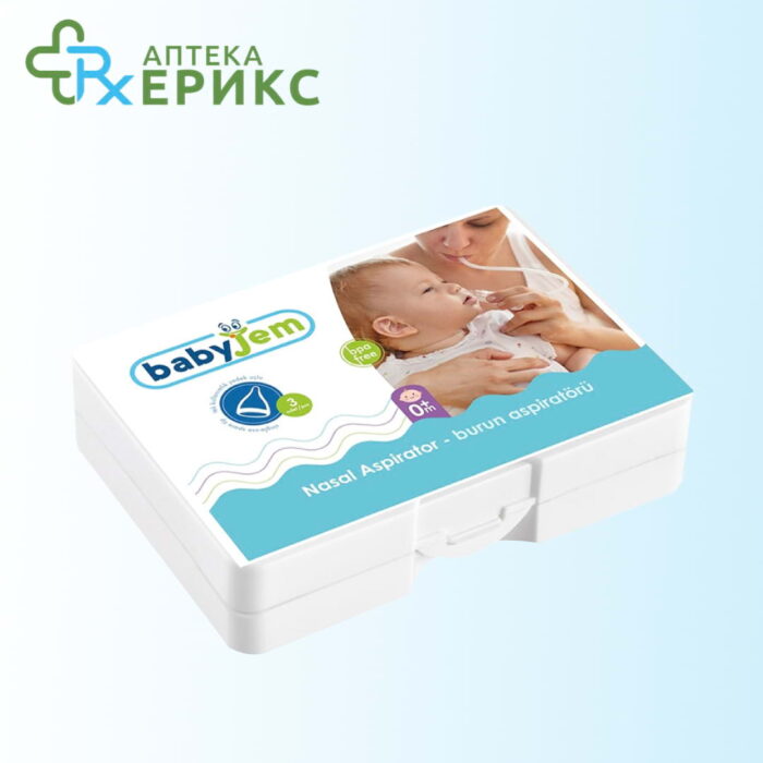 BabyJem Аспиратор за нос – Лесно го отстранува назалниот секрет кај бебињата и овозможува лесно дишење. Содржи филтер кој обезбедува целосна хигиена.