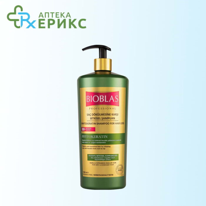 BIOBLAS Phytokeratin шампонот е ефикасен против опаѓање на косата. Благодарение на формулата збогатена со серум од билки, ја храни косата и го спречува нејзиното опаѓање.