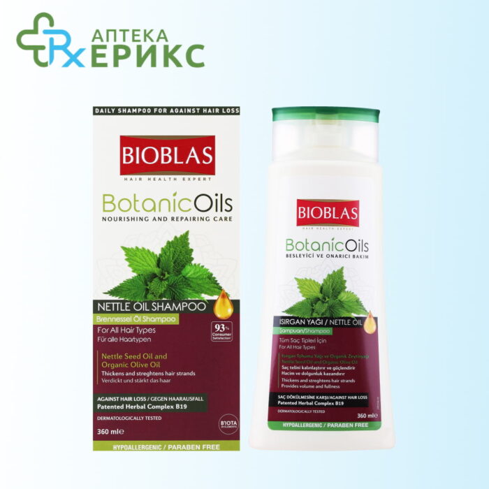BIOBLAS шампон од коприва за зајакнување на слаба и ретка коса.