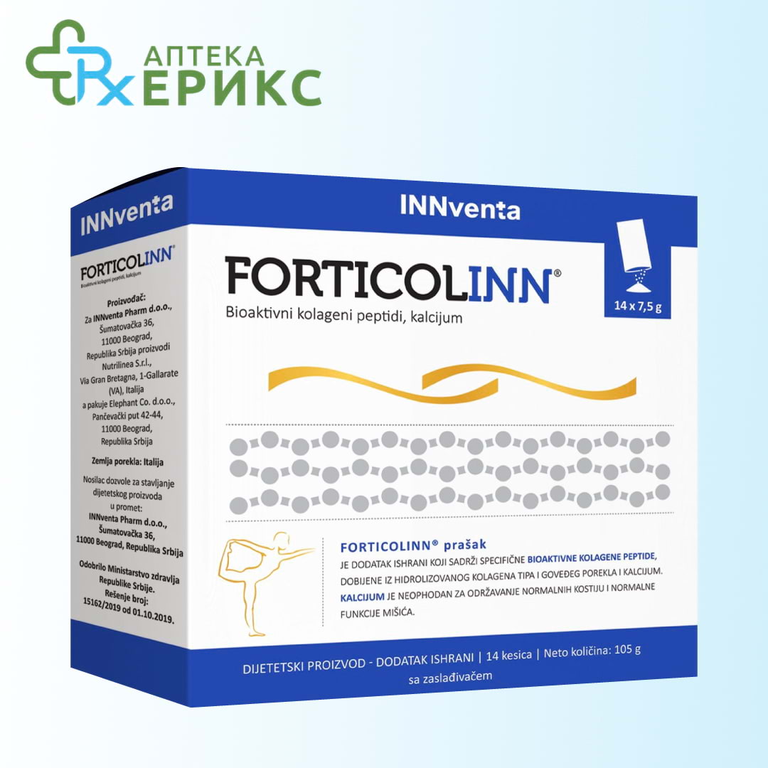INNventa Forticolinn® ќесички, е додаток на исхрана кој содржи специфичен биоактивен колагенски пептид добиен од хидролизиран колаген тип I од говедско потекло и калциум.